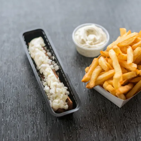 Dat betekent natuurlijk niet dat Ron gewoon een frikandel in een bakje met mayo, curry en uitjes mikt. Nope, hij gooit het over een hele andere boeg
