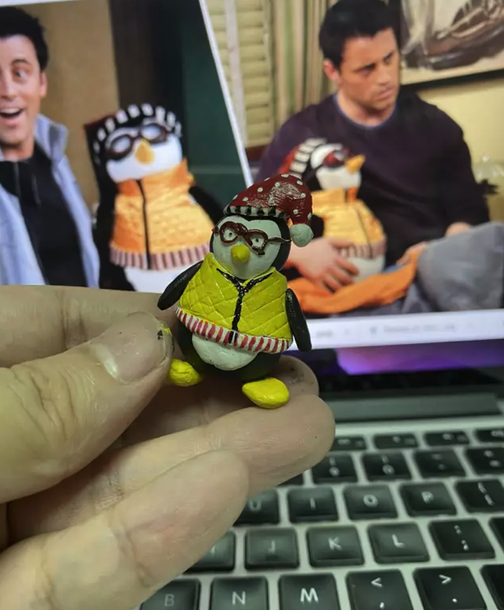 Hij zegt ook dat hij al het meetwerk het moeilijkst en saaist vond en dat hij het meeste plezier haalde uit het maken van gedetailleerde elementen zoals Joey’s pinguïn Hugsy.
