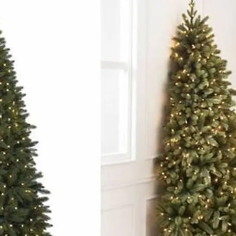 Daarom is dit dé oplossing: de halve kerstboom. Wél en grote boom, maar dan zonder achterkant. Kun je dus gewoon tegen de muur duwen, neemt maar de helft van de ruimte in
