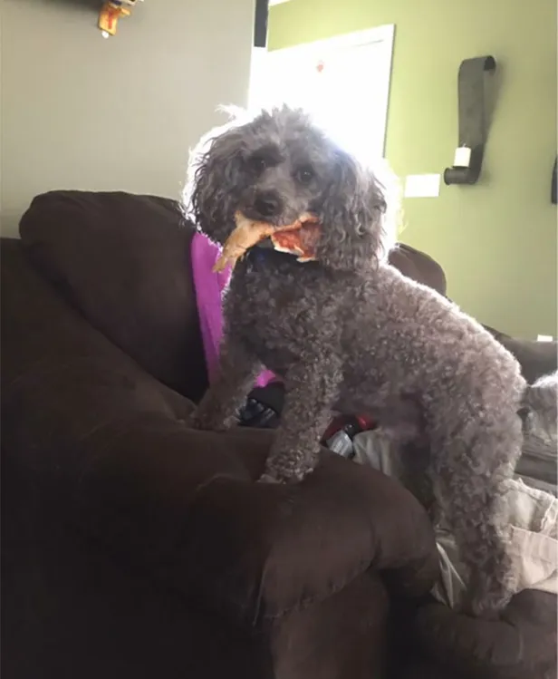 1) "Hij blafte naar de voordeur. Toen ik opstond om te kijken wat er aan de hand was, greep hij snel een stuk pizza. Er was niemand bij de deur."