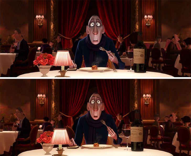 5) Nog eentje over Anton Ego: na het eten van de ratatouille is zijn gezicht iets minder bleek.