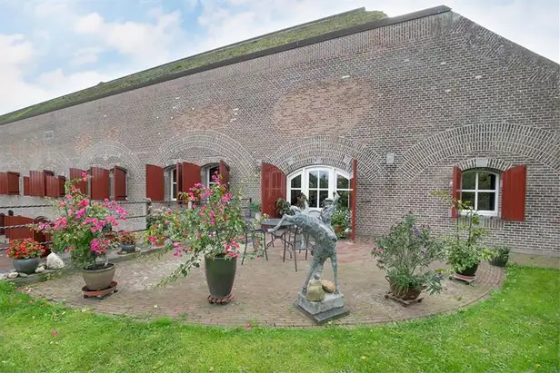 Het fort is een Rijksmonument en daar kun je subsidie voor krijgen van de overheid, maar niet voordat je 849.000 euro hebt neergeteld voor het appartement. Ook moet je daarnaast 440 euro betalen voor het onderhoud van de planten en de gebouwen. Hoef je dus zelf niet te doen.