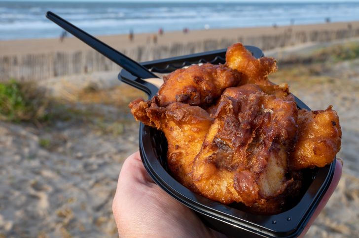 En of je aangeschoten na een middagje strand een bakje kibbeling naar binnen werkt...