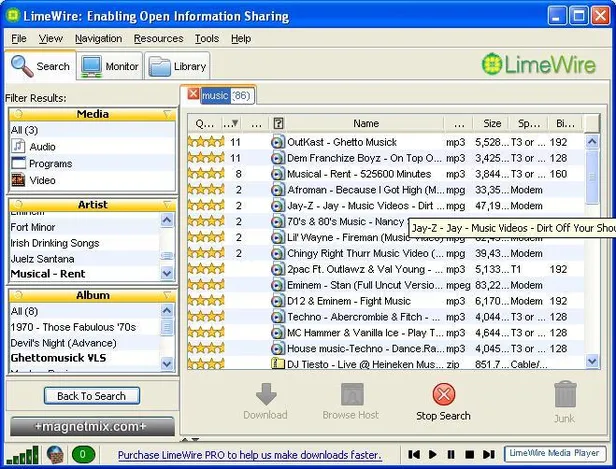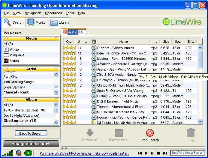 4) Maar gelukkig had je maat je laatst een nieuw hip iets laten zien: LimeWire!