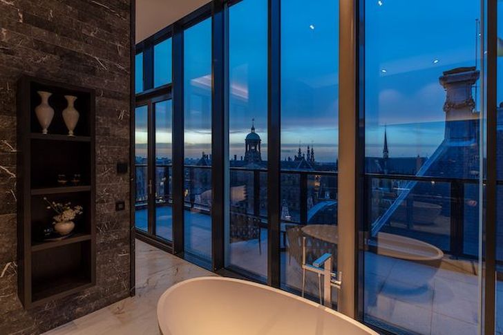 Locatie: Amsterdam. Sorteren: Hoogste naar laagste prijs. En voilà, ergens bovenaan in je lijstje verschijnt dit penthouse. Het ligt op de vijfde verdieping, heeft vier slaapkamers en drie badkamers, en ligt ongeveer zo midden in Amsterdam. Oh ja, en je hebt ook nog een aparte wijnkamer. Hee @MartienMeiland, iets voor jou? Groetjes!