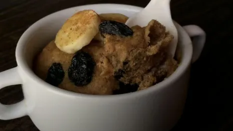 1. Lekker prakken: maak de banaan helemaal fijn. Doe deze in een magnetronbestendige mok.