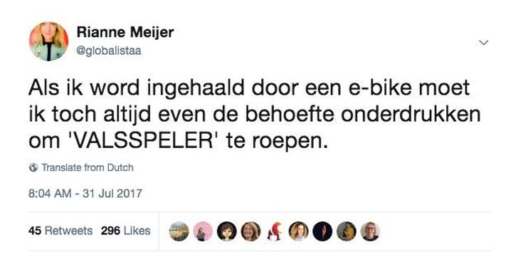 Dat is natuurlijk nogal oneerlijk voor iedereen die op z'n eigen energie fietst