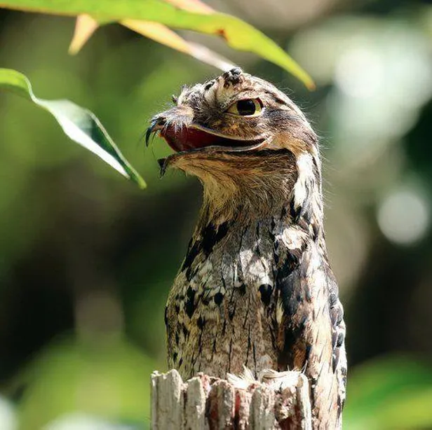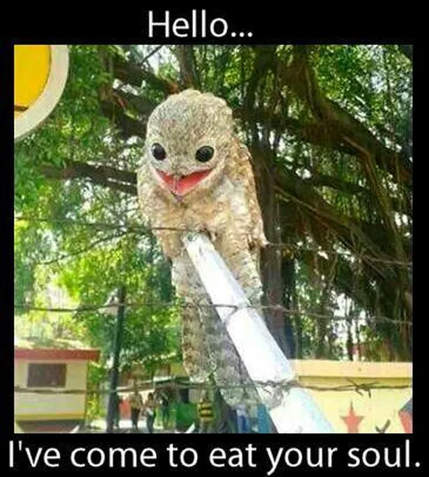 Niet alleen de ogen zorgen dat mensen de vogel eng vinden, maar ook de enorme bek. De snavel is namelijk heel kort, waardoor de grote bek nogal een muppet-gevoel geeft. | bron: nl.pinterest.com