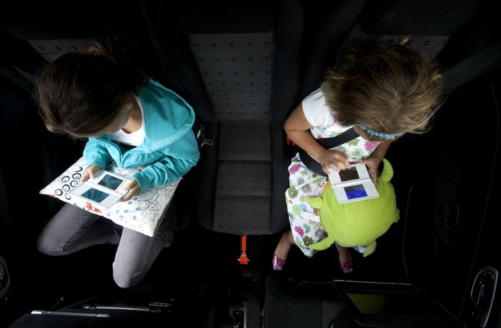 7) Om jullie stil te krijgen lieten je ouders je op de DS (of iets anders computerachtigs) spelen op de achterbank