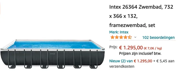 Om daadwerkelijk te zwemmen stelt Nick dat Mart minstens baantjes moet kunnen trekken. Dat lukt wel in een Intex-zwembad met een inhoud van 30.550 liter, waarvoor je op Amazon €1.295,00 betaalt