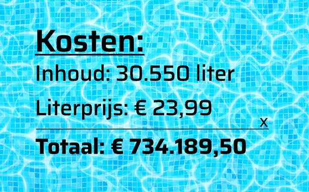 Een literprijs Bacardi Limón kost bij Gall&Gall op dit moment €23,99 en om het bad te vullen heeft hij daarvan 30.550 flessen nodig