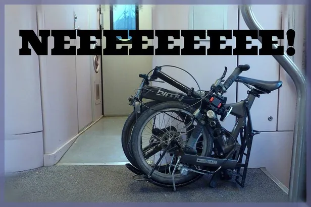 1) "Is het oké om m'n vouwfiets alvast in de drukke trein uit te vouwen?"