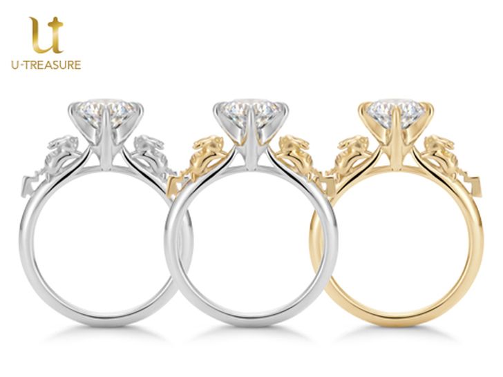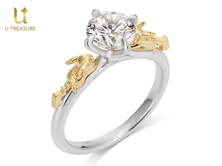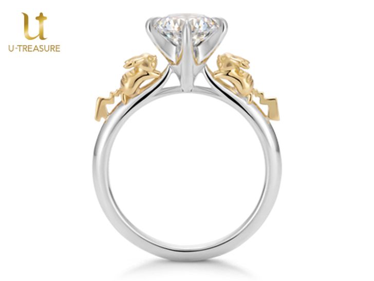 Op de ring zitten links en rechts van een diamant een vrouwelijke en een mannelijke Pikachu (te herkennen aan de staart)