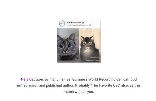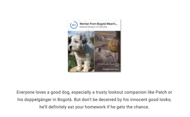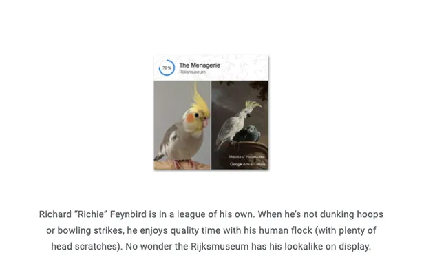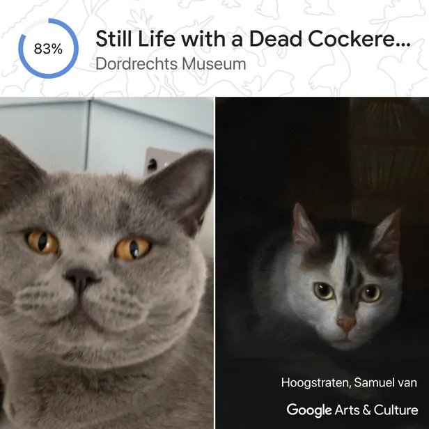 Je kunt een foto van je hond, kat, vis, hagedis of wat voor dier dan ook uploaden en vervolgens worden duizenden schilderijen doorzocht op een dubbelganger