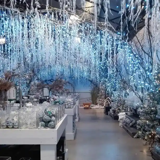 In het tuincentrum is Kerst precies zoals het hoort te zijn: overdadige luxe