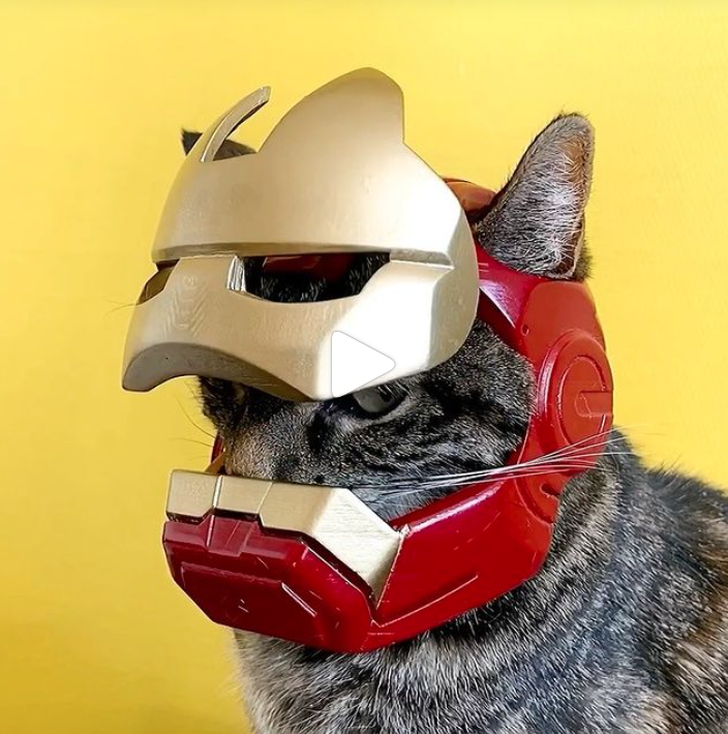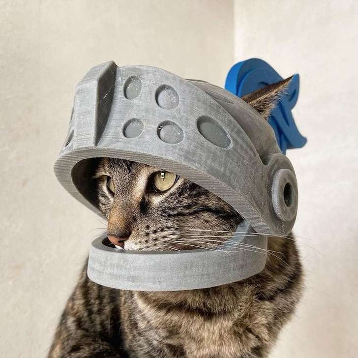 Maar dat moet natuurlijk wel veilig gebeuren, dus begon Rémy met het 3D-printen van helmen voor zijn kat