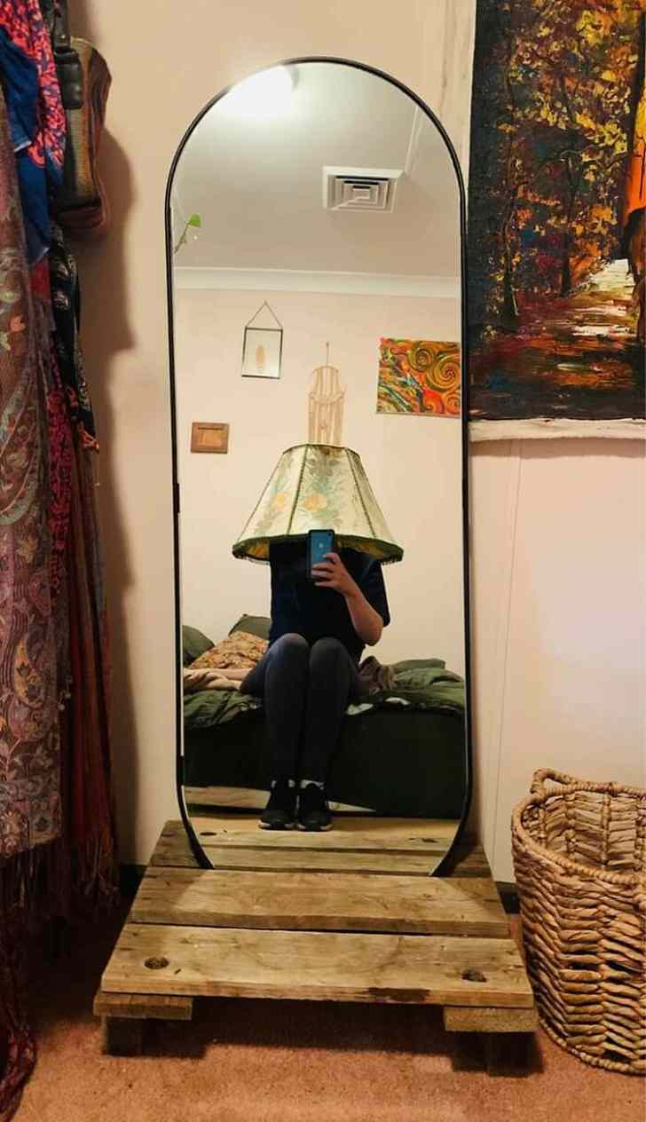 1) Oké, we snappen dat je zelf niet met je hoofd op een verkoopsite wilt, maar er zijn dus andere manieren om een spiegel te fotograferen