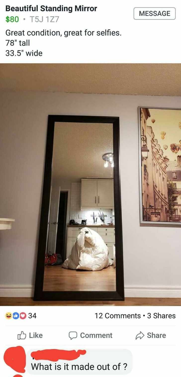 Je spiegel verkopen op Marktplaats: het klinkt simpel en onschuldig, maar in de praktijk is het moeilijker dan je denkt. We hebben hier al eens een post over gemaakt, maar mensen hebben er sindsdien niet echt van geleerd. Daarom zetten we nog eens 12 foto's van mensen die hun spiegel willen verkopen op een rijtje. Hoe meer je ervan achter elkaar ziet, hoe grappiger het wordt. Let maar op.