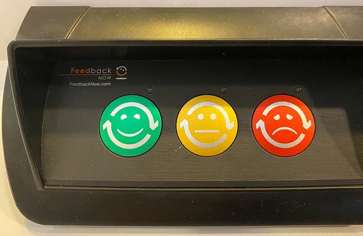 9) Toiletstop dan maar, en tijdens het handenwassen op de rode knop met de sippe smiley drukken qua aanbeveling: kan immers altijd beter
