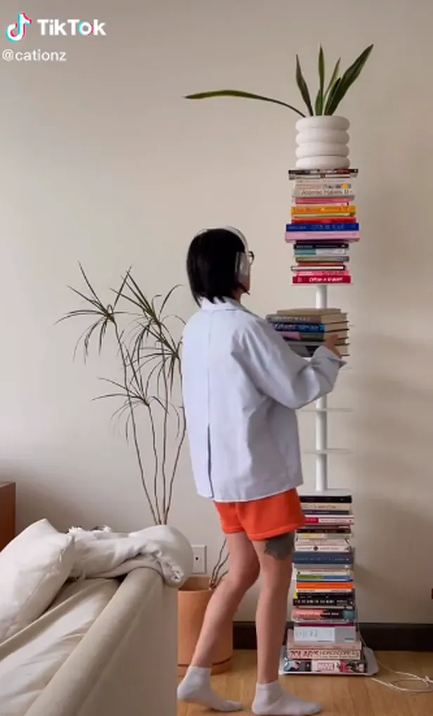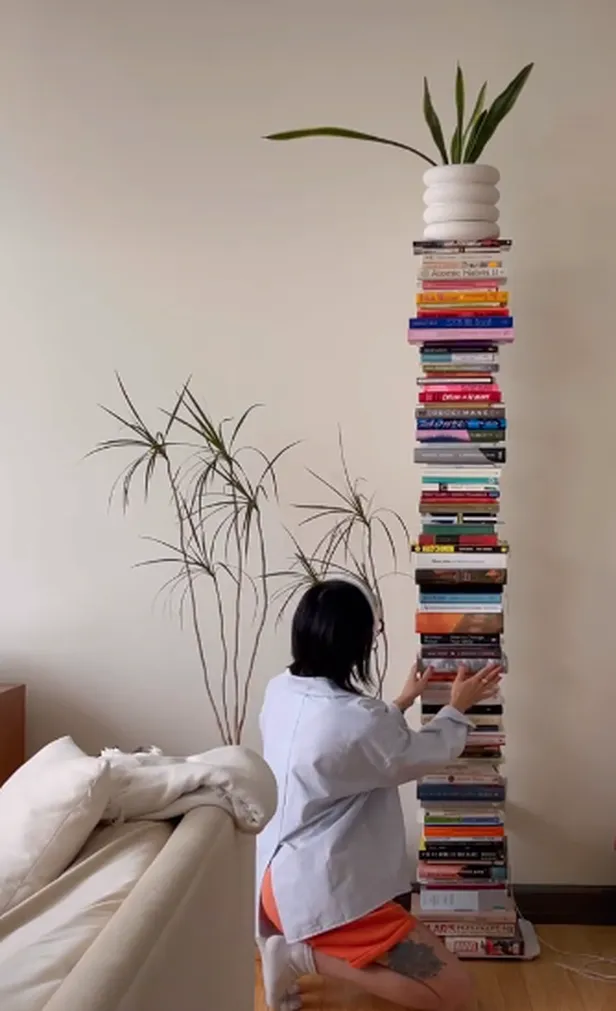 De 'boekenkast' heeft 10 planken, maar als je hem helemaal vult lijkt het gewoon een enorme stapel boeken