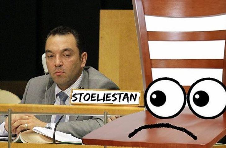 De tweelingbroer van de stoel met de witte vlakken probeerde het nog bij de VN