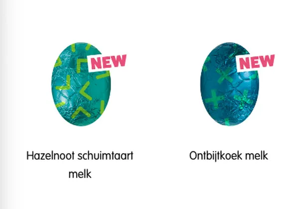 Ook ontbijtkoek-melk en hazelnoot schuimtaart-melk zijn nieuw in het assortiment