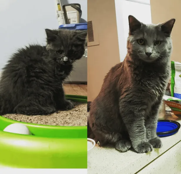 En dat heeft-ie gekregen. De kat, die als kitten werd geadopteerd, heet nu Crusty en heeft een topleven bij z'n nieuwe baasjes.