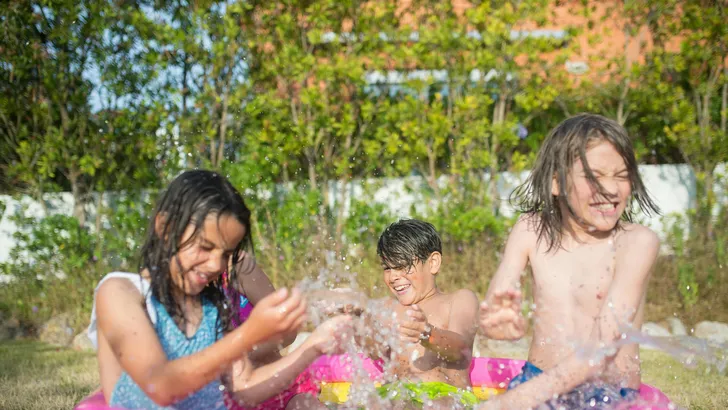 2) Met de hele klas op een opblaaskrokodil in het lokale tropische zwembad (of op warme dagen in de achtertuin)
