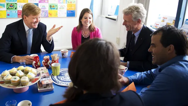 Het is bijzonder moeilijk om een foto van Wimlex te vinden waarop hij stoer doet of boos kijkt, dus stel je even voor dat hij hier uit is op een fittie met staatssecretaris Tamara van Ark, okay, thanks.