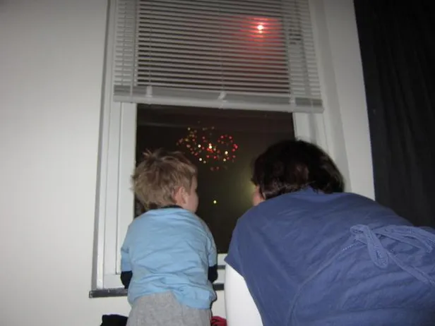 Maar daarna was het tijd voor vuurwerk: heel jong, achter het raam met mama