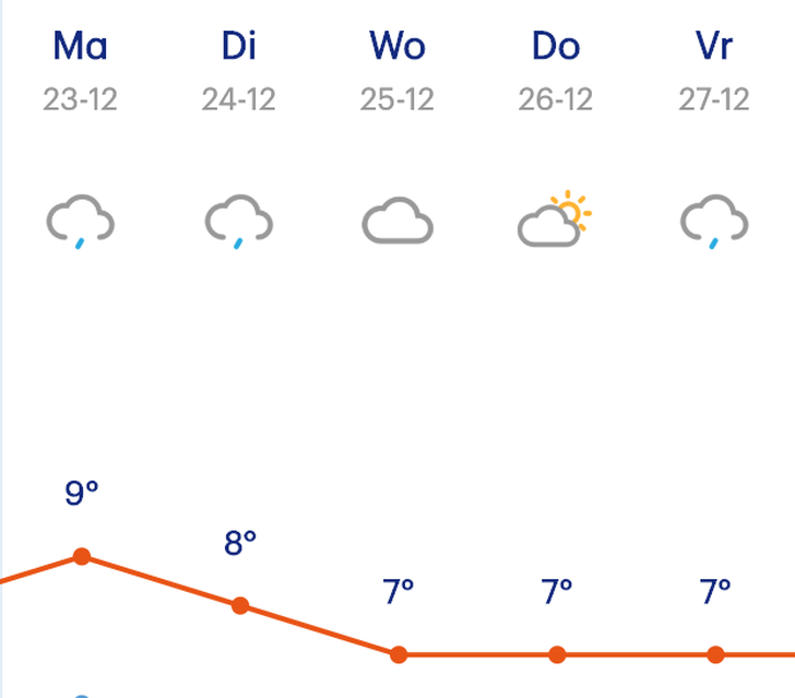 Hieronder zie je de weersvoorspelling voor de kerstdagen