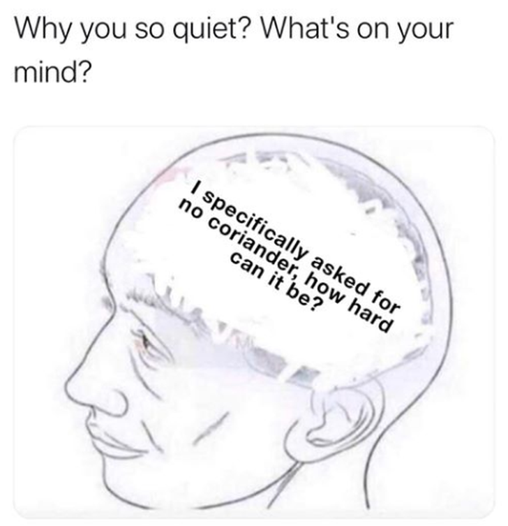 8) En dan dus geen koriander geven
